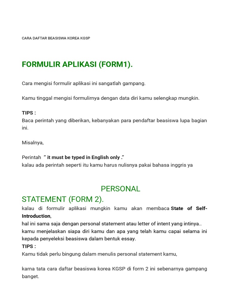Contoh Personal Statement Kgsp / Beasiswa Korea Selatan Kgsp / We also have multilingual homework helpers so if anyone asks us, can you.. I have had a big dream to gain my bachelor degree in korea, and the korean government scholarship program (kgsp) will be the bridge for me to achieve this dream. Sebelumnya, sudah dibahas esai bagian self introduction. Thankyou 🙂 aku jg sudah baca 'about me'… wow~! Bagian study plan akan dibahas ditulisan selanjutnya. Our chat support system remains active.